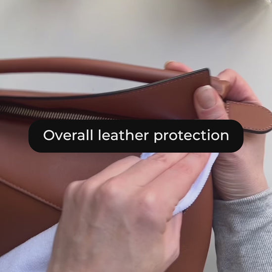 Spray LeatherGlow onto a clean microfibre cloth and use circular motions to clean your item.